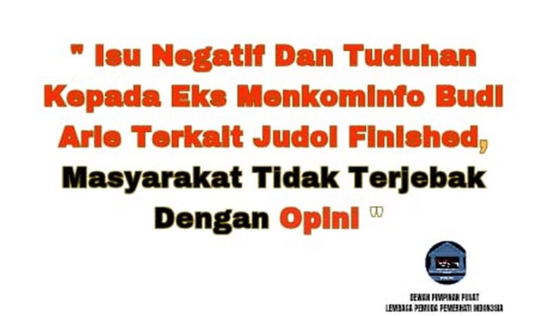 Ketua Umum Dewan Pimpinan Pusat Lembaga Independen Pemuda Pemerhati Indonesia (DPP LPPI ) Dedi Siregar menyebutkan pasalnya isu negatif dan tuduhan kepada eks Menkominfo Budi Arie terkait judi online ( judol) terbantahkan dan finished, pada faktanya freming negatif dan tuduhan yang beredar di publik politisasi isu dan upaya pembunuhan karakter terhadap mantan Menkominfo terbentahkan dengan pernyataan terdakwa perkara judi online Kominfo Zulkarnaen Apriliantony eks Menkominfo Budi Arie tidak terlibat dalam kasus skema judi online ( judol ) tersebut