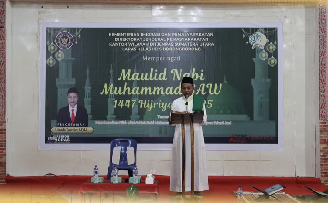 Siborongborong – Lembaga Pemasyarakatan (Lapas) Kelas IIB Siborongborong menggelar perayaan Maulid Nabi Muhammad SAW pada Rabu (24/9) dengan tema “Membumikan Nilai-Nilai Akhlak Nabi Muhammad SAW dalam Kehidupan Sehari-hari.”