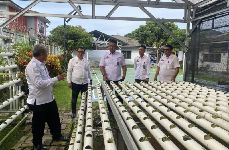Sibolga — Kepala Lembaga Pemasyarakatan (Kalapas) Kelas IIA Sibolga Tri Purnomo bersama jajaran meninjau kegiatan kemandirian pertanian hidroponik, Kamis (09/10/2025).